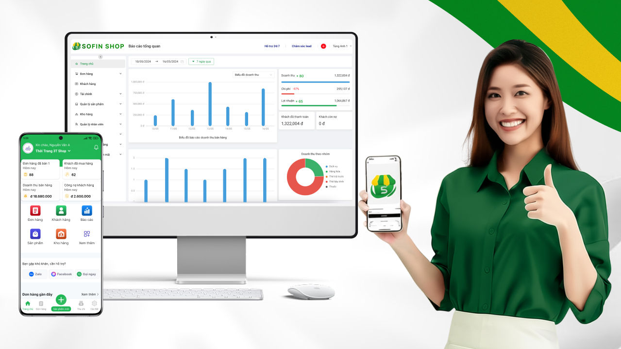 Với SOFIN Shop, bạn chỉ cần điện thoại và vài thao tác để nắm toàn bộ doanh thu, công nợ, tồn kho trong lòng bàn tay.