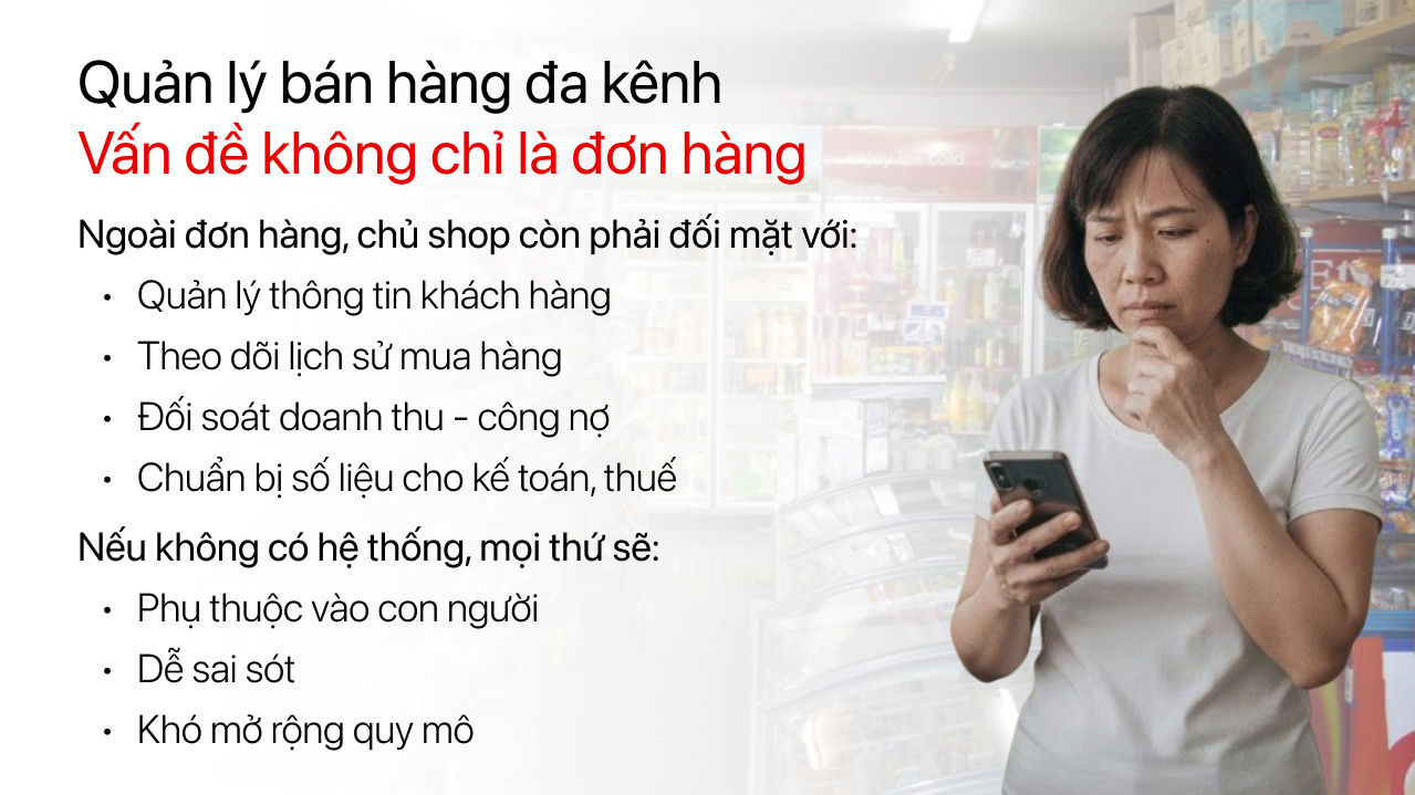 👉 Đây chính là bán hàng đa kênh, và nếu không có hệ thống quản lý phù hợp, rủi ro sẽ tăng theo cấp số nhân.
